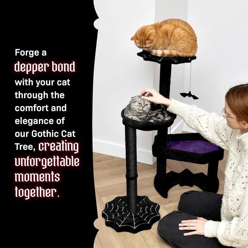 Elevate your space with the XMSJ Gothic Cat Tree—where eerie elegance meets rugged comfort for indoor cats, offering space-efficient play structures designed for felines up to 11 lbs.