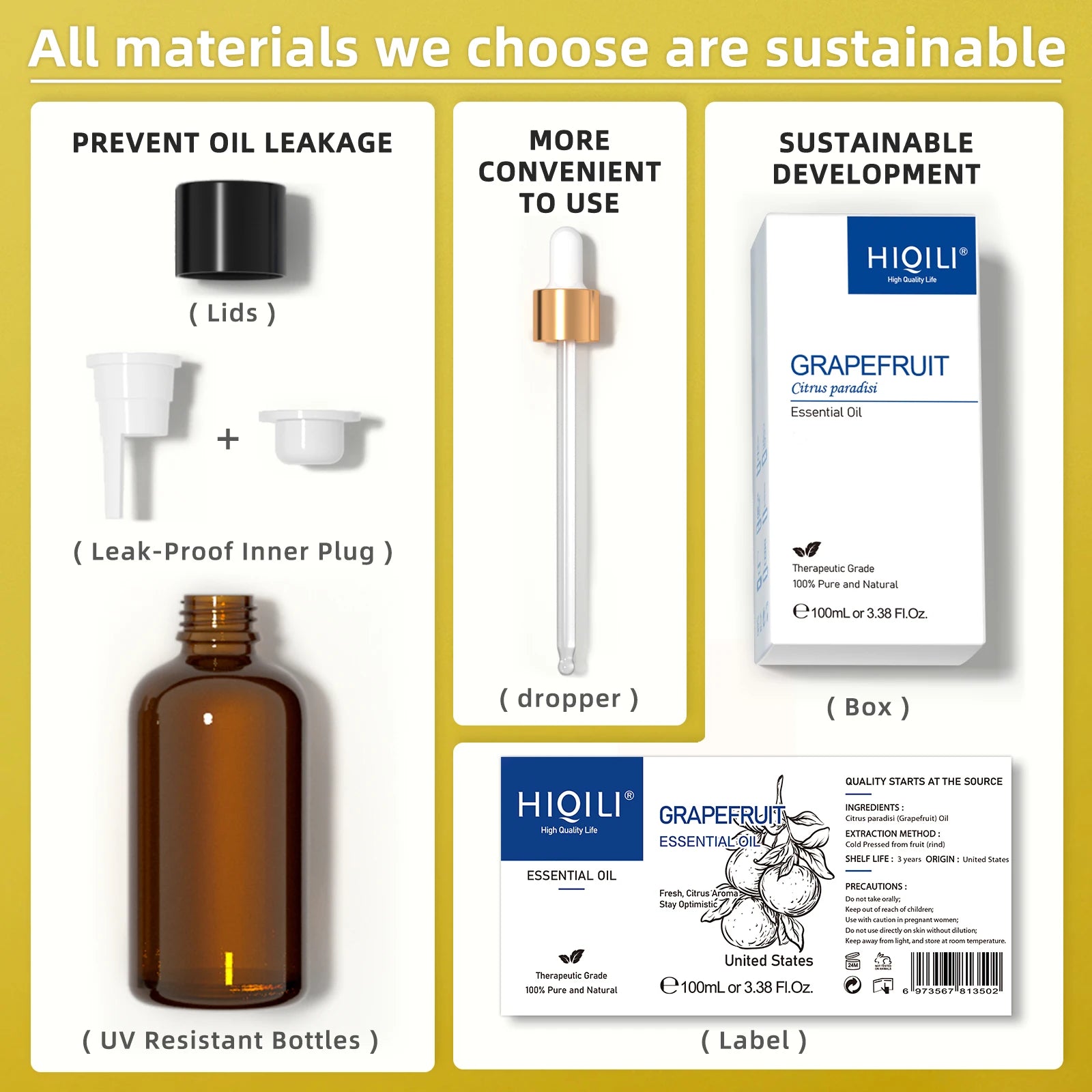 HIQILI Grapefruit Essential Oil Cold Pressed Aromatherapy