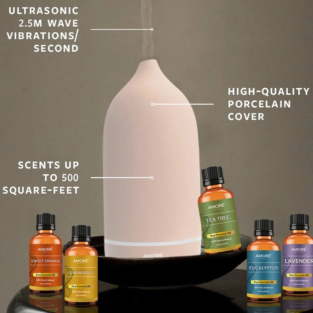 Experience calm, color, and fragrance in one compact unit with the XMSJ Ceramic Ultrasonic Essential Oil Diffuser LED Lights.