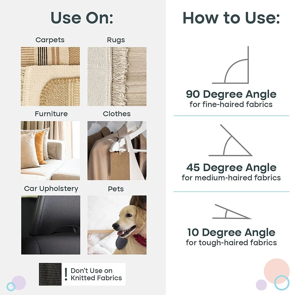 - Effortlessly lifts pet hair from deep fibers on carpets, sofas, bedding, and clothing, while staying gentle on delicate fabrics to prevent snags.